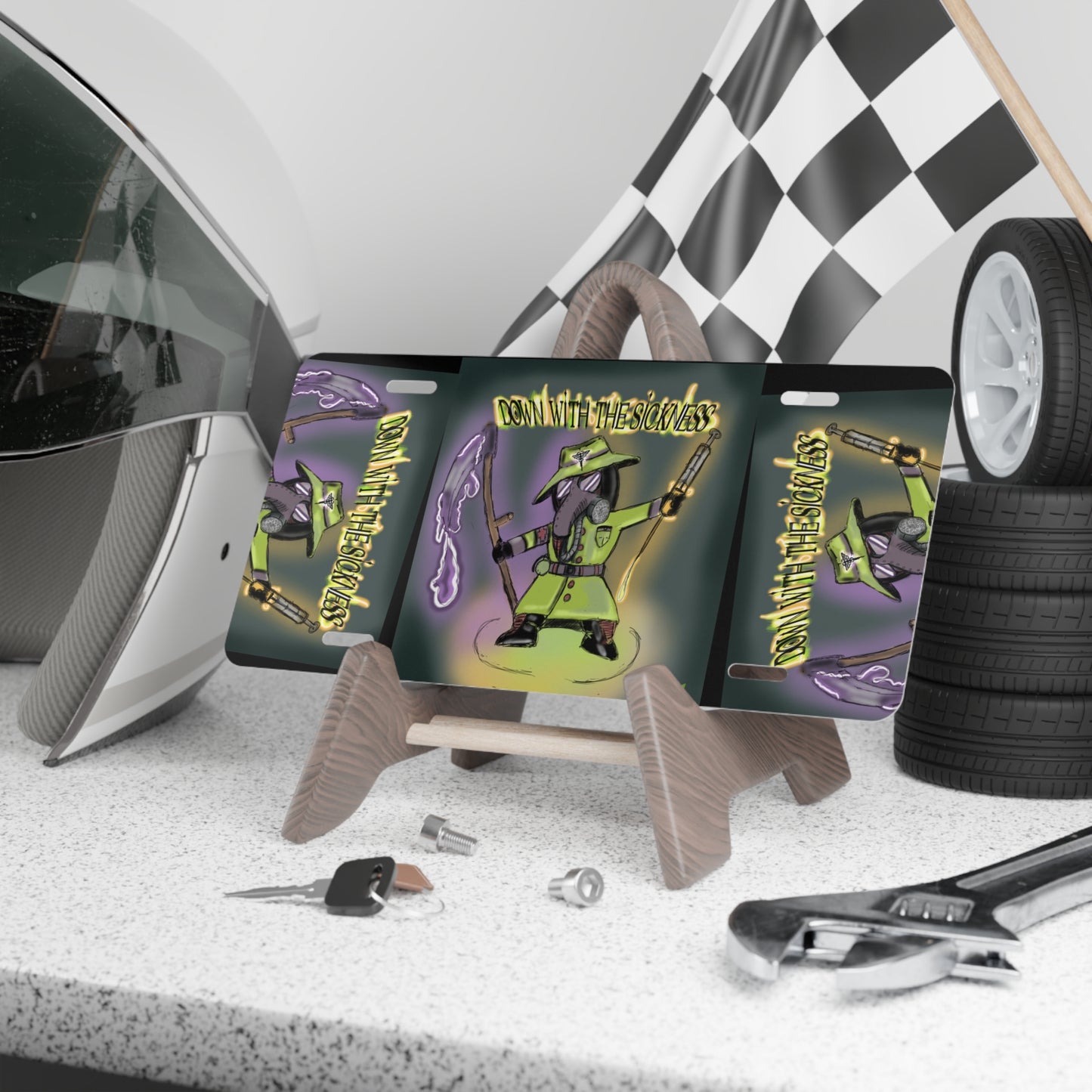 Cool Vanity Plate with 'Down With The Sickness' Design | Unique Car Decoration, Custom License Plate, Gift for Gamers, Halloween Decor, Funky