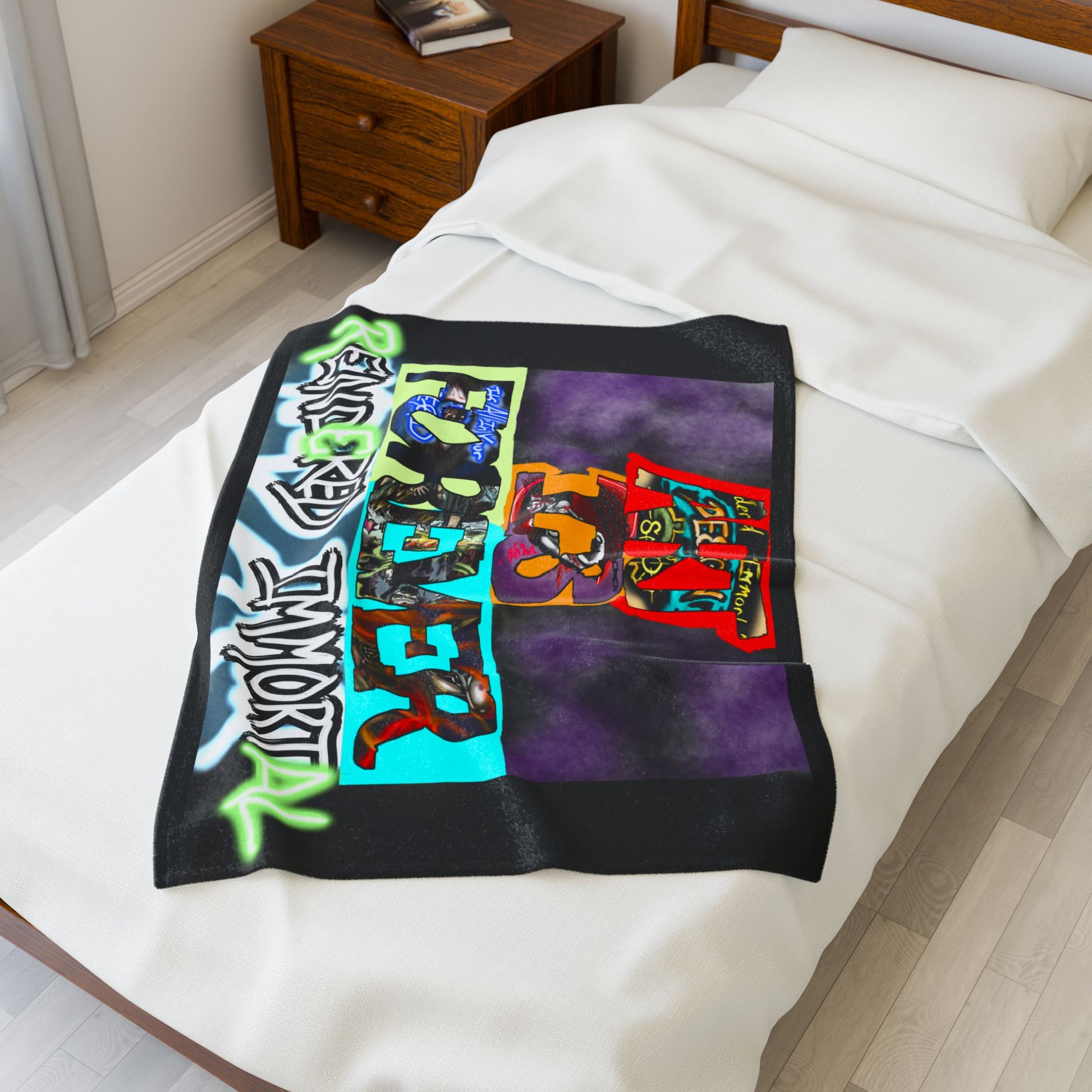 Snuggle up with this velveteen plush blanket, perfect for adding a layer of comfort and warmth to your home. Its soft texture invites relaxation, making it an ideal companion for cozy nights in or movie marathons. Designed for adults, this blanket envelops you in style and fun, showcasing high-detail vibrant prints on one side. It's perfect for those who enjoy unique decor and want to express their personality through their living space. Perfect for gifting on occasions like birthdays, housewarming parties, or any festive celebration, this blanket is sure to delight anyone who appreciates comfort and creativity.