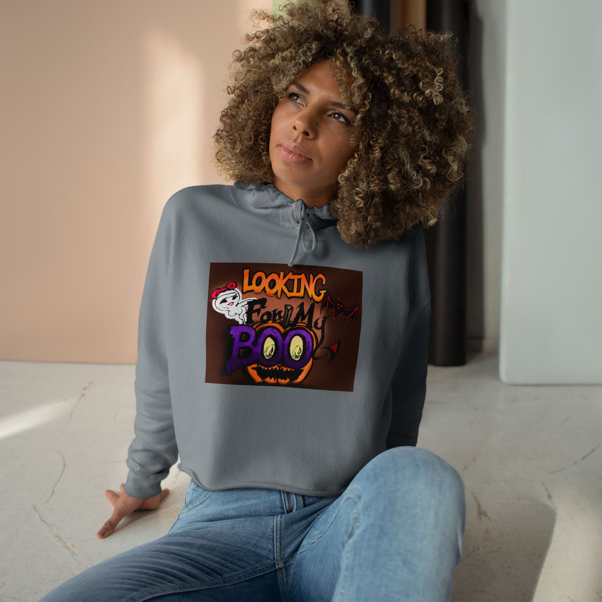 Halloween Crop Hoodie - Looking for My Boo, Spooky Fashion, Women's Clothing, Party Outfit, Cozy Fall Wear