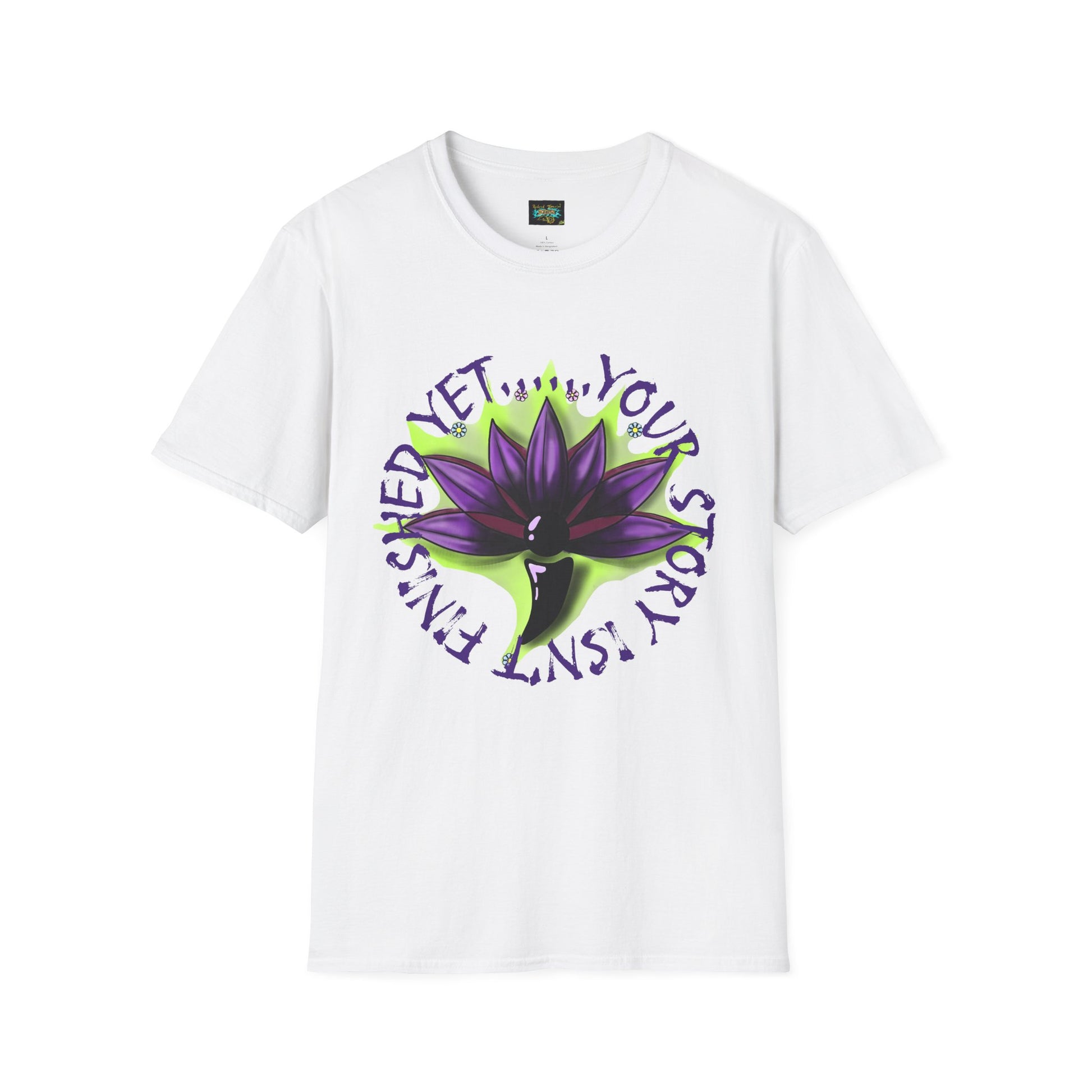 Celebrate your story with this vibrant Unisex Softstyle T-Shirt, designed to inspire and uplift. The striking printed design, featuring a bold lotus flower, symbolizes growth and perseverance, making it a perfect addition to your wardrobe. Ideal for creative souls and anyone who appreciates unique self-expression, this tee is perfect for casual outings, workshops, or as a thoughtful gift for friends and family. Whether you're marking a special occasion or just adding to your everyday essentials, this t-shirt embodies positivity and motivation. Great for birthdays, graduations, or just because, wear it proudly and let your story shine!